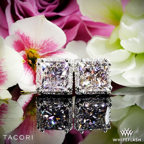 The Dantela Diamond Earrings from Tacori feature all of Tacori's best design details. Fine milgrain, delicate prongs, and a halo of diamonds highlight your center diamonds. (center diamonds not included)