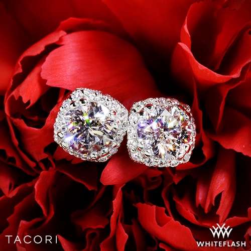 The Dantela Diamond Earrings from Tacori feature all of Tacori's best design details. Fine milgrain, delicate prongs, and a halo of diamonds highlight your center diamonds. Prefer a different earring back? Tacori offers an upgrade to screw backs for $350, or LaPousette backs for $425. As a special order, designs ordered with an earring back upgrade will be considered non-returnable once the order is placed.