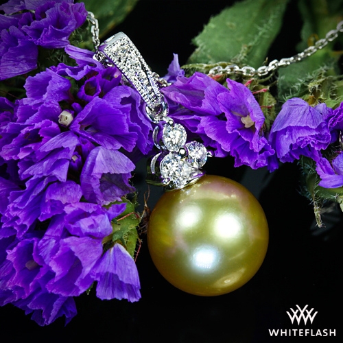 11.5mm Golden Pearl set in 18k White Gold "Golden Pearl" Diamond Pendant with 0.20ctw melee