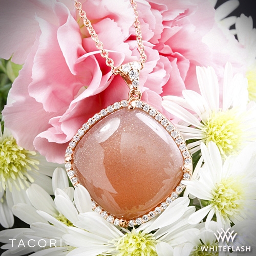 For the Tacori girl looking for the next staple accessory, this necklace is pure perfection. A beautiful peach moonstone sits delicately within a rose gold frame, surrounded by diamonds and hangs from a thin classic rose gold chain. If you have any questions regarding this item then please contact one of our friendly diamond and jewelry consultants at 1-877-612-6770.