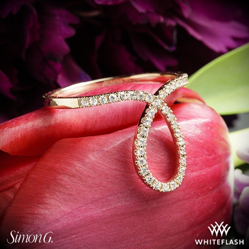 The Simon G. LP2314-A diamond ring is a fashion-forward style crafted in 18k rose gold. Unique in every way, this is a fun and stylish designer piece that will attract lots of attention.